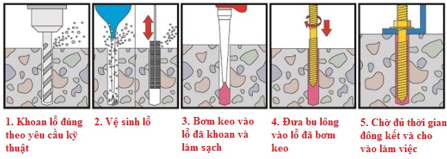 Các bước thi công hóa chất cấy thép Sanko ER-40W
