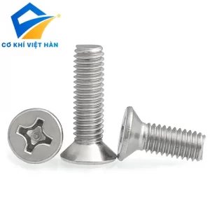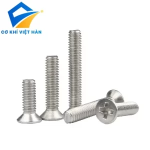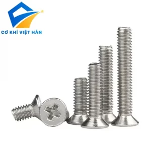 Vít pake đầu bằng thân bu lông inox, hay còn gọi là flat head screw with bolt thread, là một loại vít được làm từ thép không gỉ (inox), có phần đầu dạng phẳng (flat head) và thân vít được tiện ren giống với bu lông. Đầu vít thường có rãnh chữ thập (Phillips) hoặc rãnh Torx, giúp dễ dàng tháo lắp bằng tua vít. Sản phẩm này được sử dụng phổ biến trong các ứng dụng cần kết nối chắc chắn và bề mặt hoàn thiện phẳng, như lắp ráp máy móc, thiết bị điện tử, cơ khí, hoặc xây dựng. Tại Cơ Khí Việt Hàn, vít pake đầu bằng thân bu lông inox được sản xuất từ các loại inox cao cấp như 304 và 316, đảm bảo độ bền, khả năng chống ăn mòn và tính thẩm mỹ vượt trội.